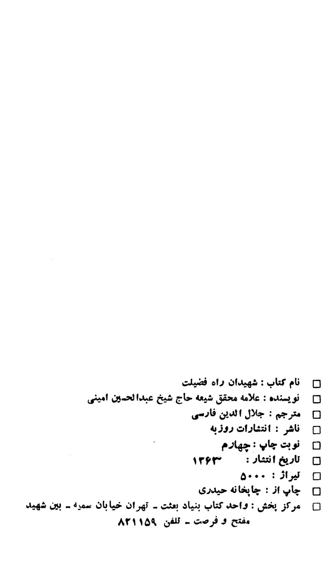 🔖 book_keywords : دانلود فایل pdf شهیدان راه فضیلت نوشته عبدالحسین امینی ترجمه جلال الدین فارسی