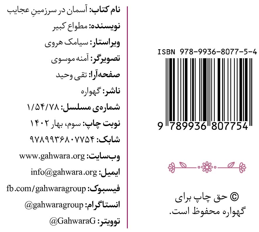 🔖 book_keywords : دانلود فایل pdf آسمان در سرزمین عجایب نوشته مطواع کبیر ترجمه تصویرگر: آمنه موسوی