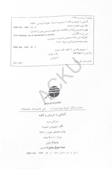 🔖 book_keywords : دانلود فایل pdf آشنایی با عروض و قافیه نوشته سیروس شمیسا