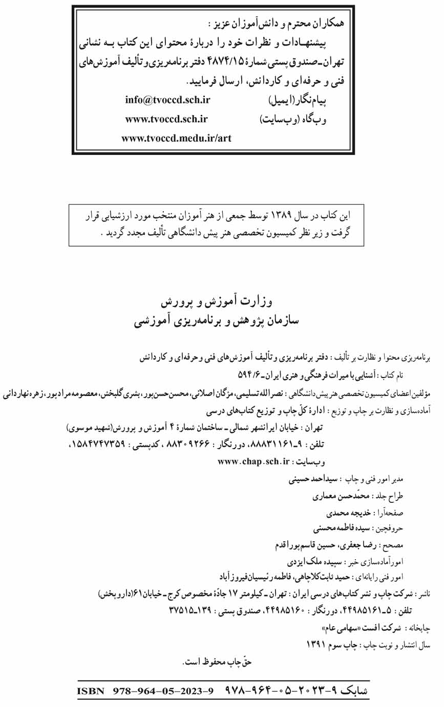 🔖 book_keywords : دانلود فایل pdf آشنایی با میراث هنری و فرهنگی ایران سال ۱۳۹۱ نوشته جمعی از نویسندگان