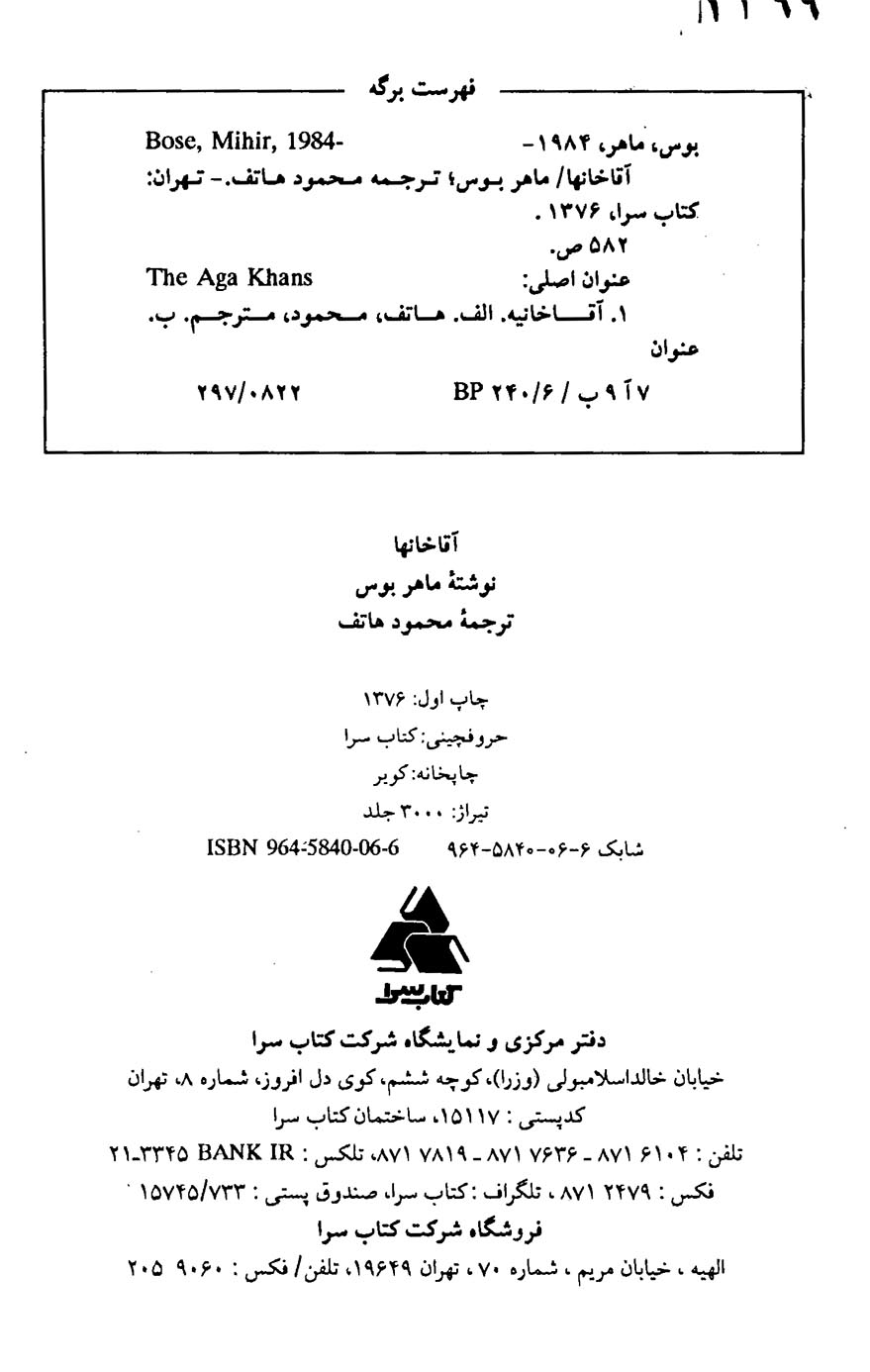 🔖 book_keywords : دانلود فایل pdf آقاخان ها نوشته ماهر بوس