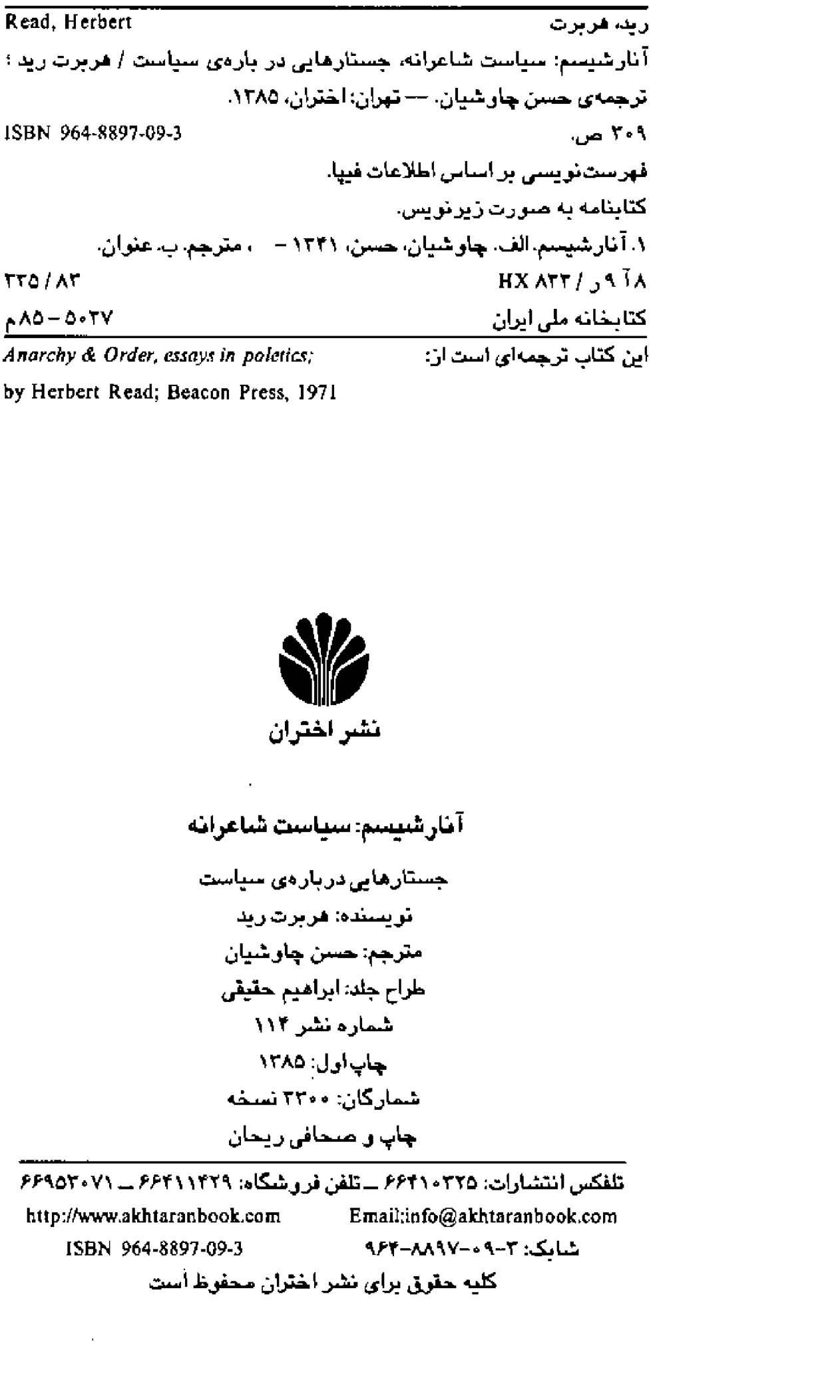 🔖 book_keywords : دانلود فایل pdf آنارشیسم، سیاست شاعرانه نوشته هربرت رید ترجمه حسن چاوشیان