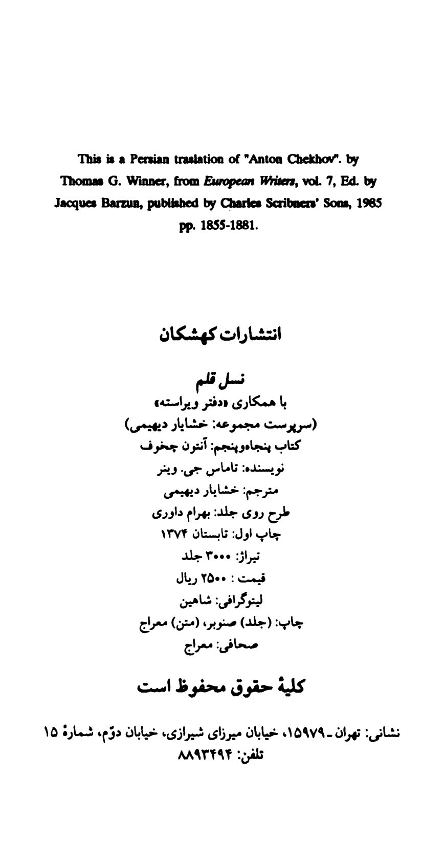 🔖 book_keywords : دانلود فایل pdf آنتون چخوف نوشته تاماس جی. وینر ترجمه خشایار دیهیمی