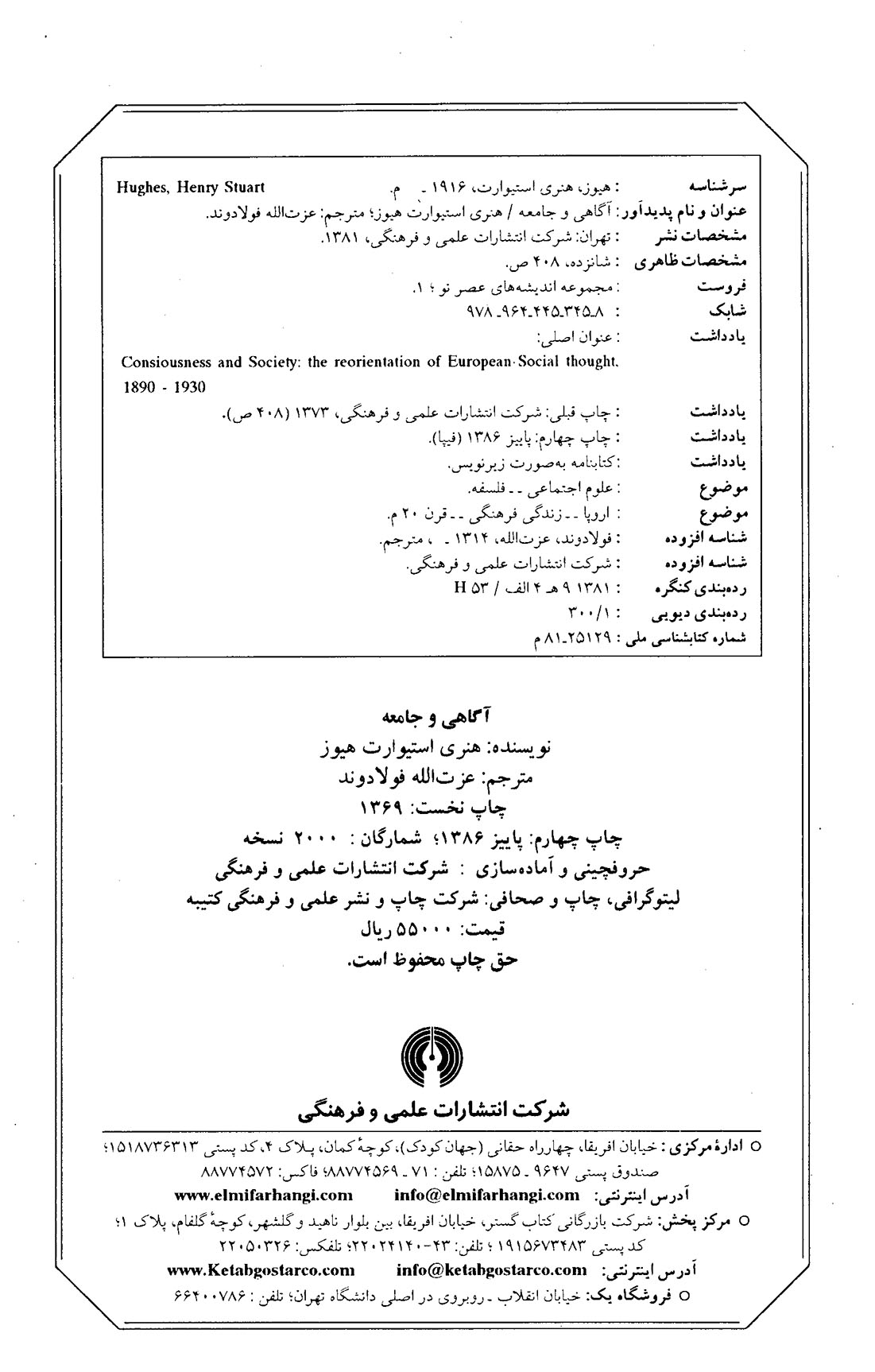 🔖 book_keywords : دانلود فایل pdf آگاهی و جامعه نوشته هنری استیوار ترجمه عزت الله فولادوند