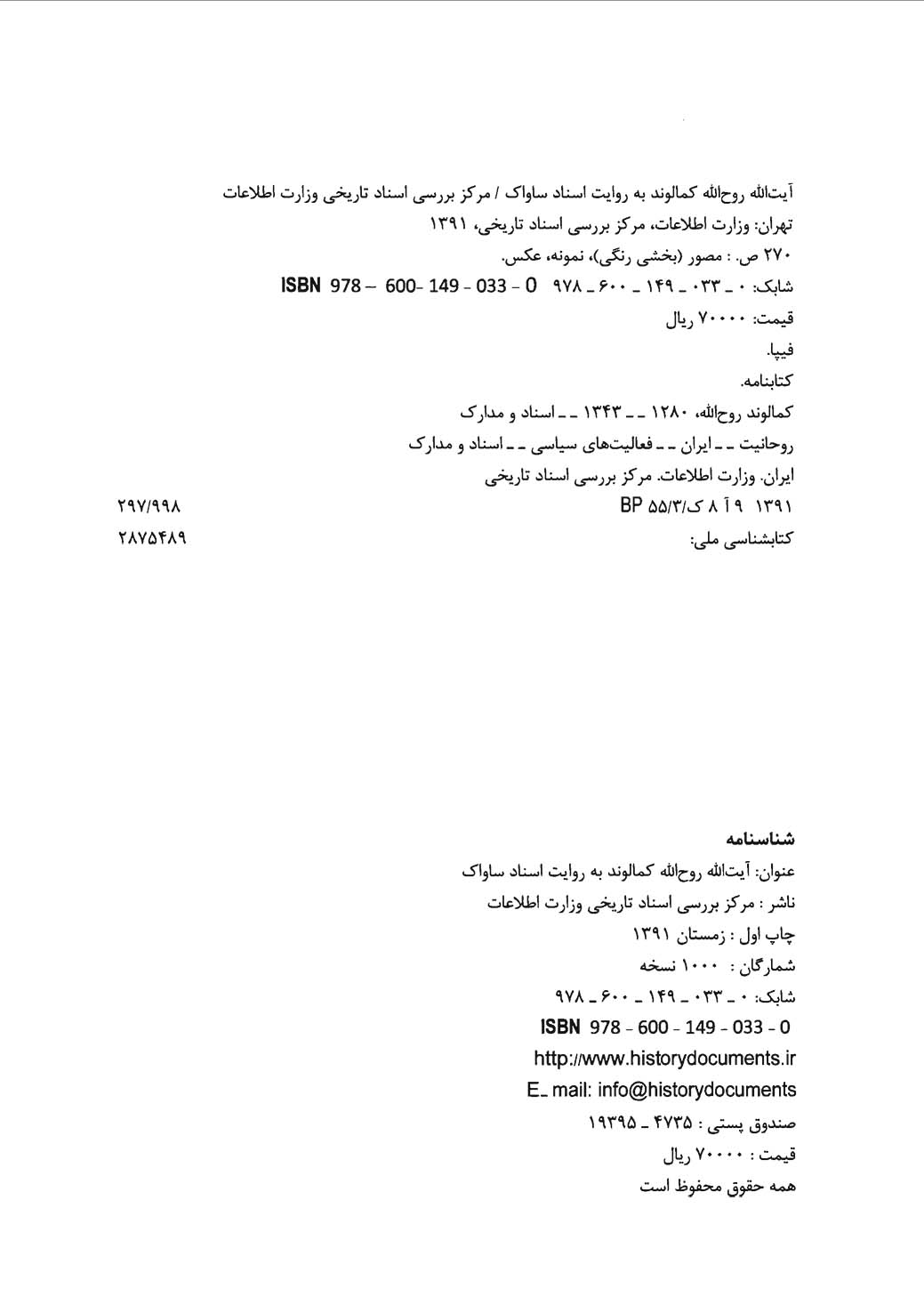 🔖 book_keywords : دانلود فایل pdf آیت الله روح الله کمالوند به روایت اسناد ساواک نوشته مرکز بررسی اسناد تاریخی وزارت اطلاعات