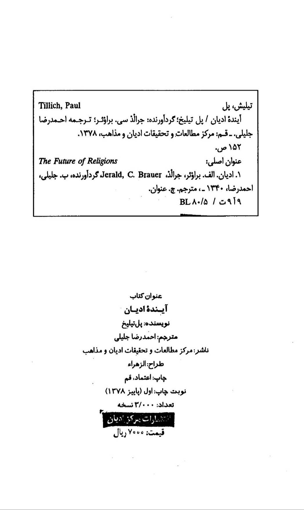 🔖 book_keywords : دانلود فایل pdf آینده ادیان نوشته پل تیلیخ ترجمه احمدرضا جلیلی