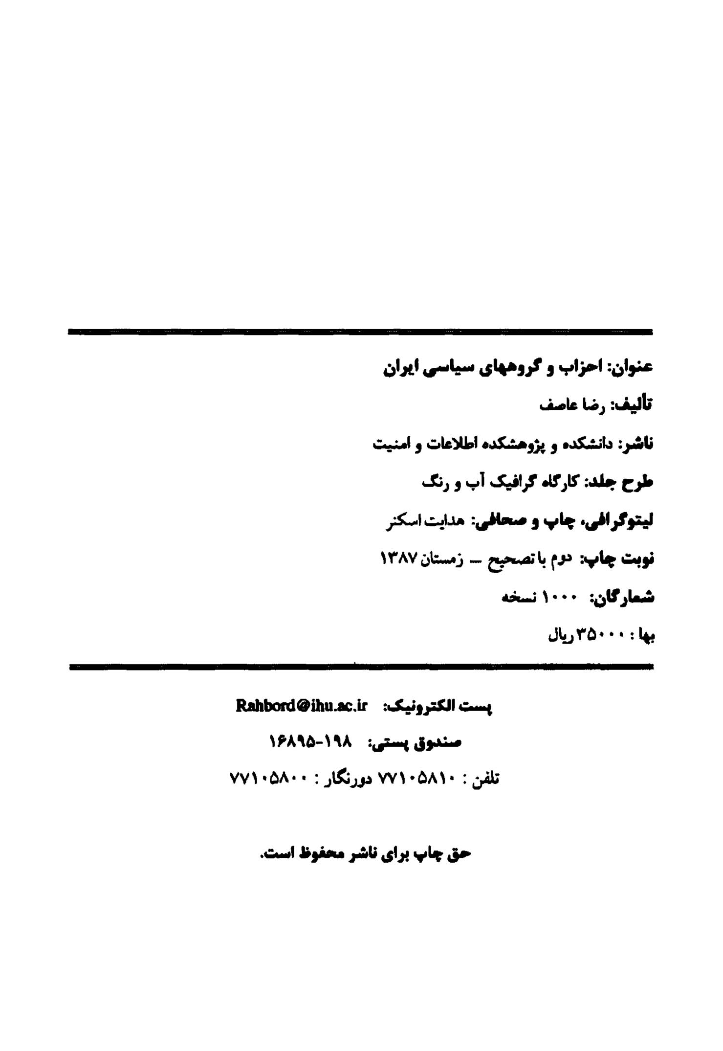 🔖 book_keywords : دانلود فایل pdf احزاب و گروههای سیاسی ایران نوشته دانشکده و پژوهشکده اطلاعات و امنیت