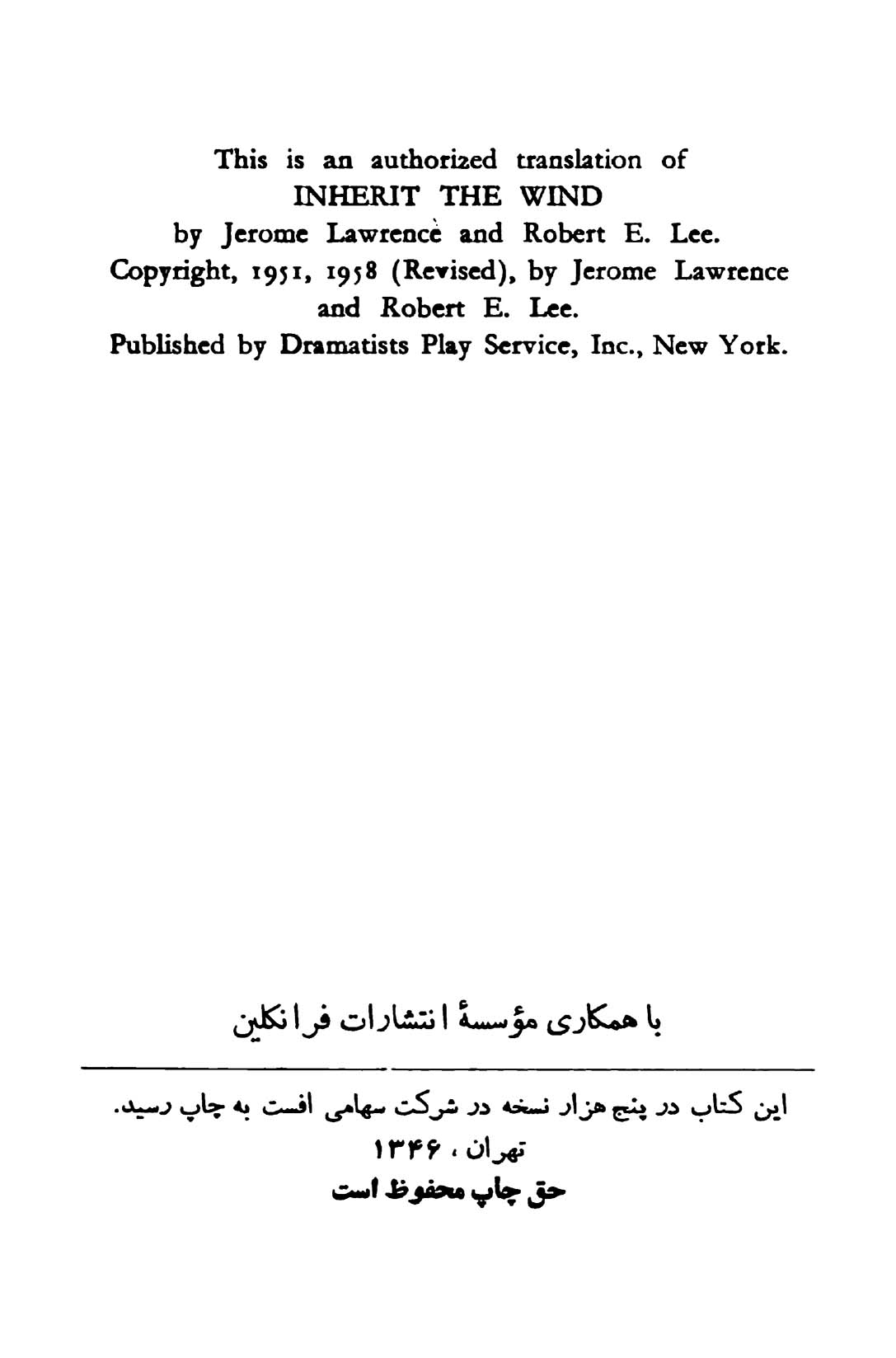 🔖 book_keywords : دانلود فایل pdf ارثیۀ باد نوشته جروم لارنس، رابرت لی ترجمه حسین مسعودی خراسانی