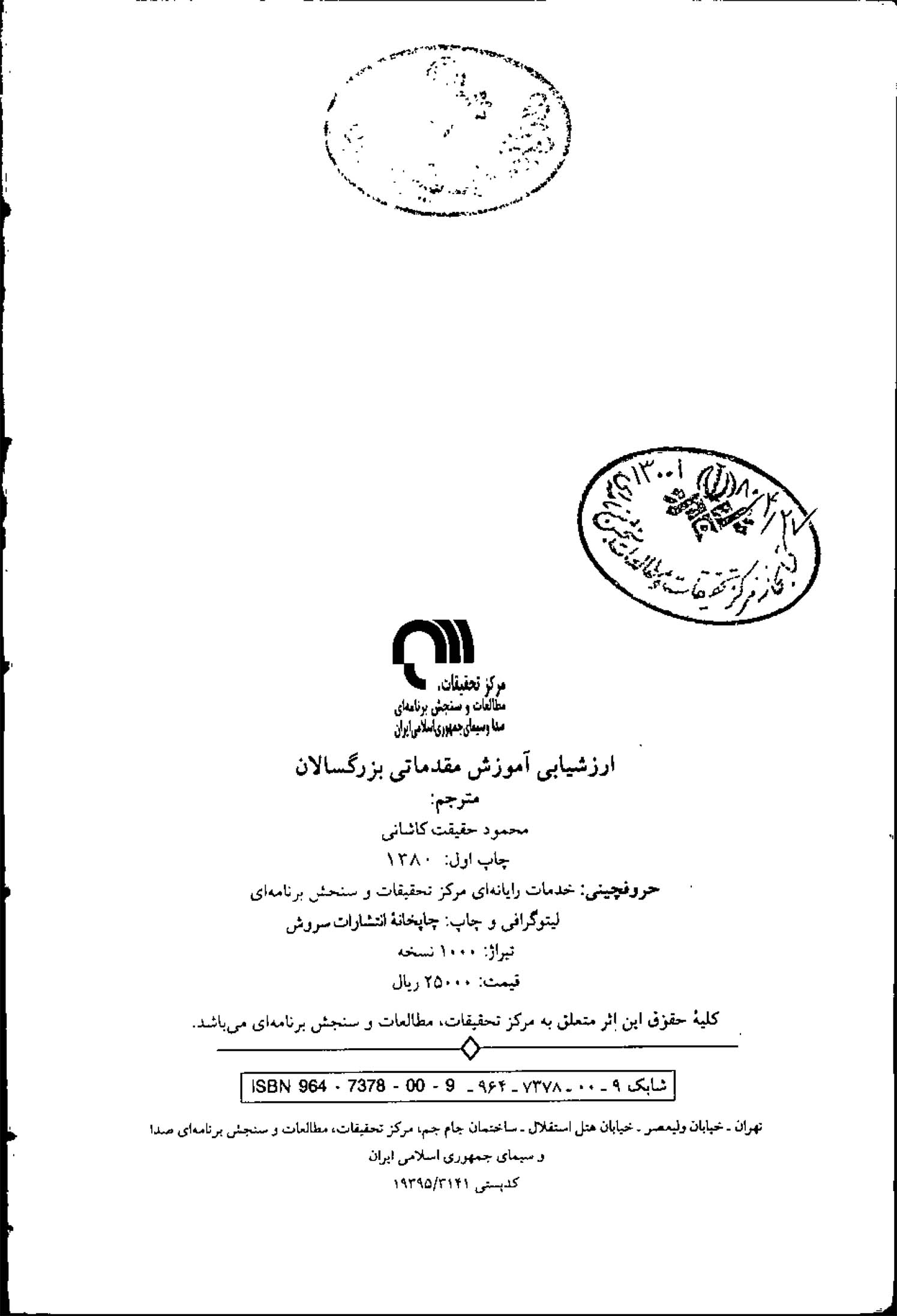 🔖 book_keywords : دانلود فایل pdf ارزشیابی آموزش مقدماتی بزرگسالان نوشته دنیس دی. گولر آلن بی . ناکس ترجمه محمود حقیقت کاشانی