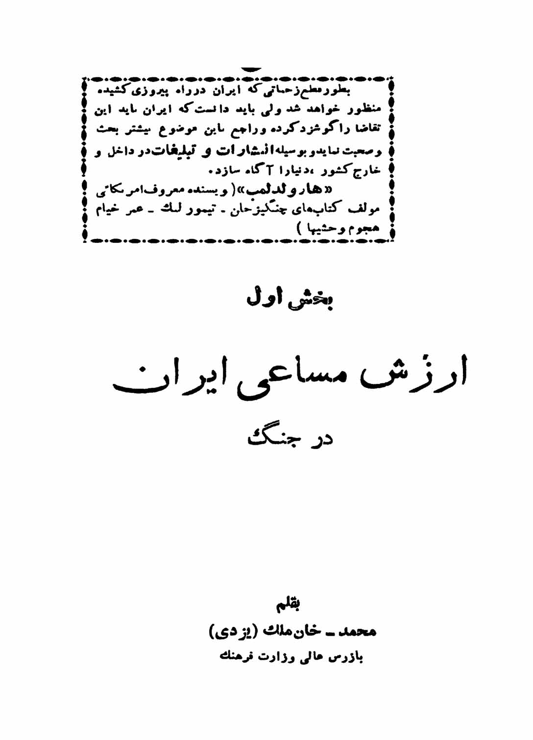 🔖 book_keywords : دانلود فایل pdf ارزش مساعی ایران در جنگ نوشته محمد خان ملک ( یزدی )