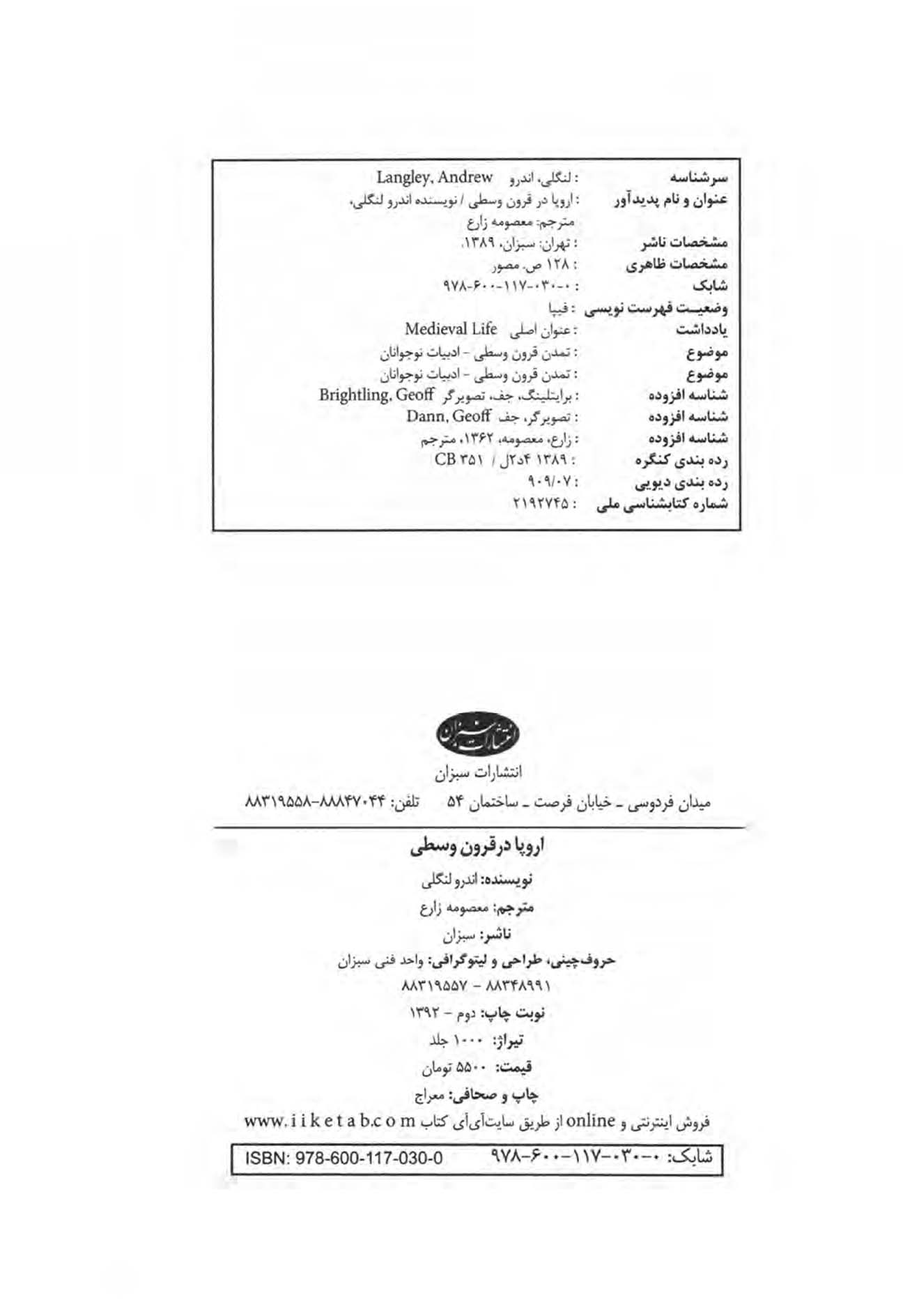 | شناسنامۀ کتاب | شماره کتابشناسی ملی 2192745 |
