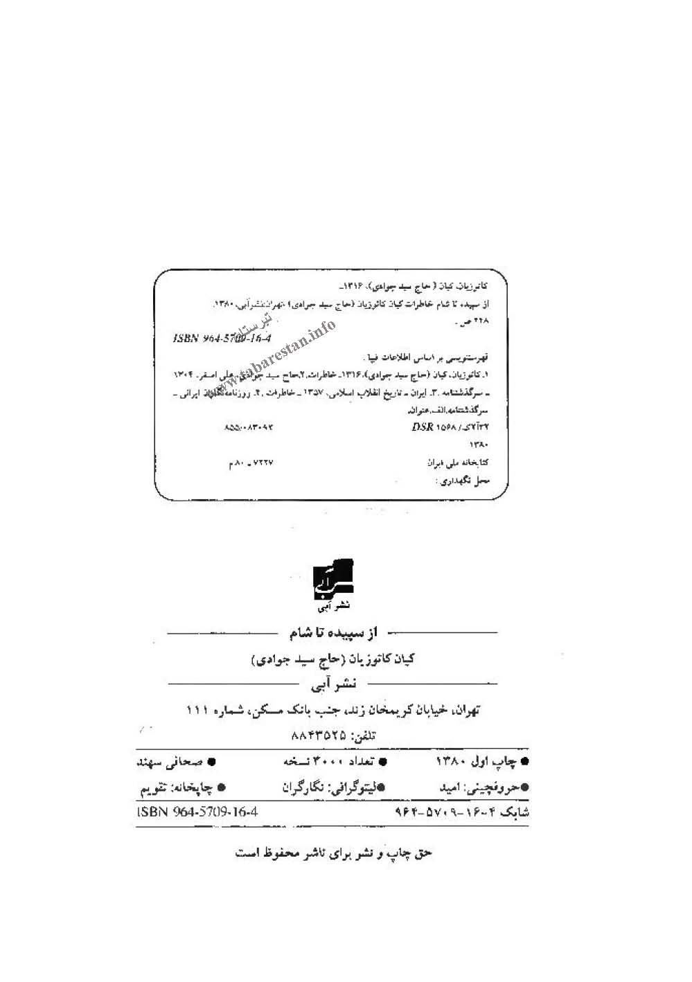 یادداشت چاپ دوم‌: بهار 1381؛ 20000 ریال‌