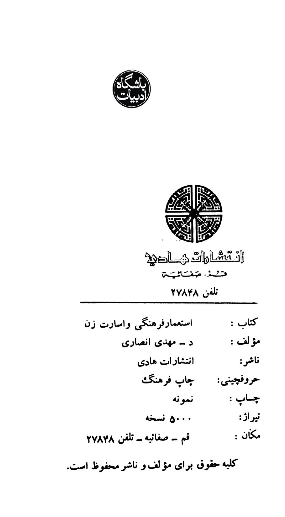 🔖 book_keywords : دانلود فایل pdf استعمار فرهنگی و اسارت زن نوشته د. مهدی انصاری