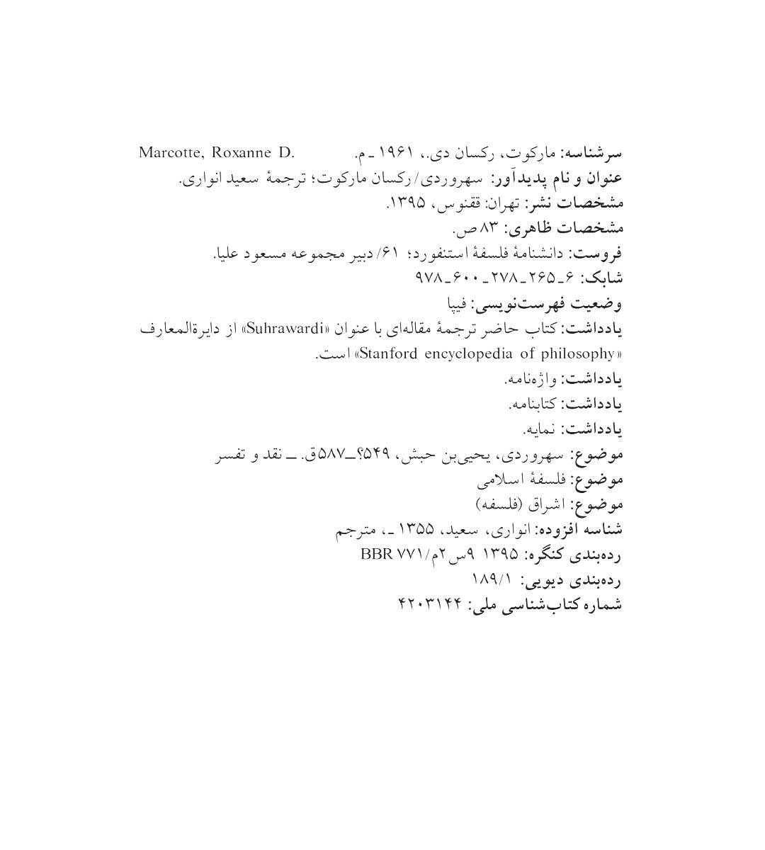 🔖 book_keywords : دانلود فایل pdf استنفورد ۶۱ … سهروردی نوشته رکسان مارکوت ترجمه سعید انواری