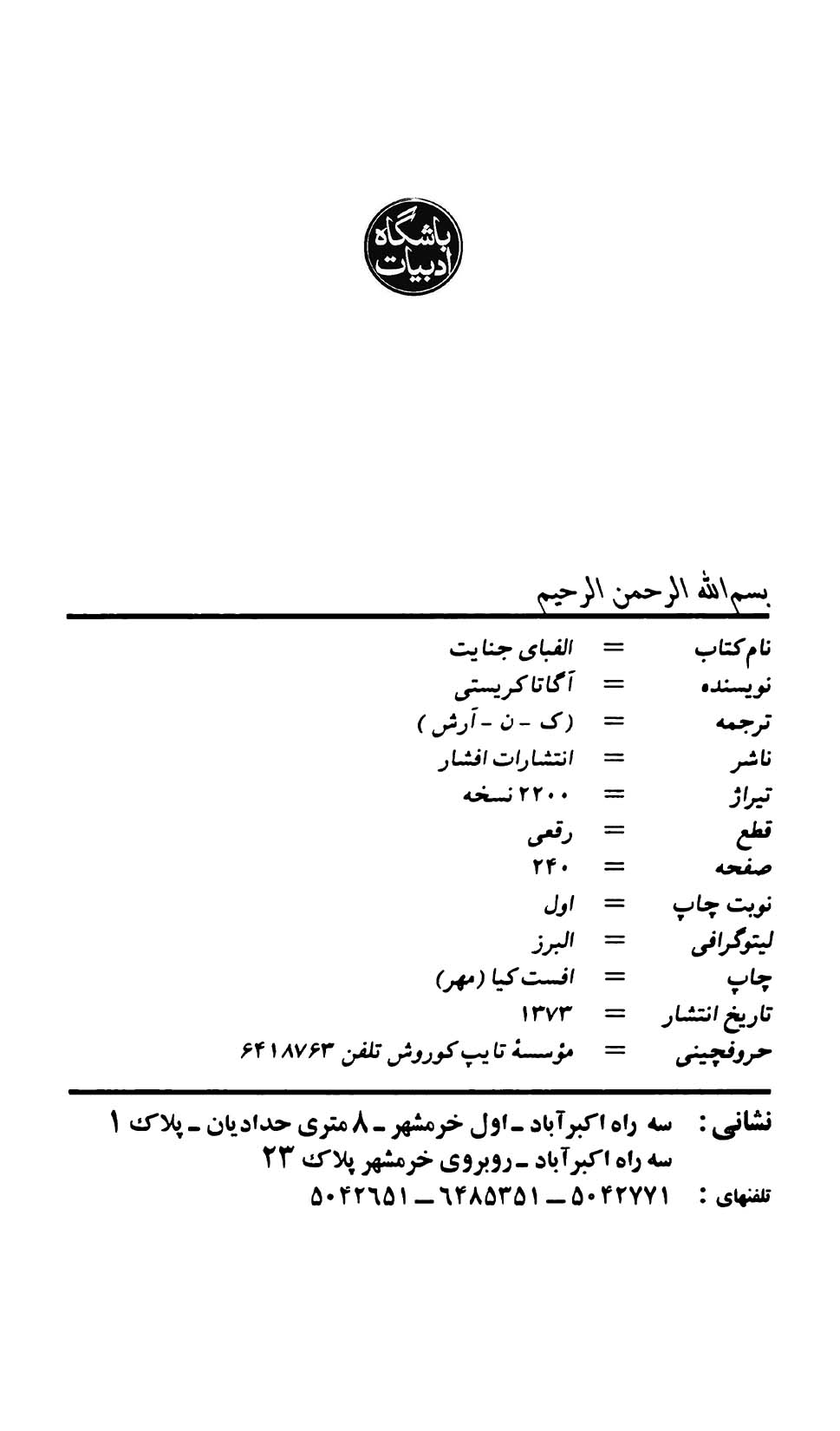 🔖 book_keywords : دانلود فایل pdf الفبای جنایت نوشته آگاتا کریستی ترجمه ک.ن. آرش