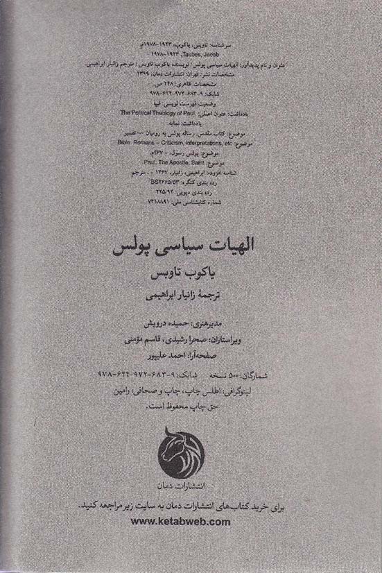 عنوان و نام پدیدآور الهیات سیاسی پولس/نویسنده یاکوب تاوبس ؛ مترجم زانیار ابراهیمی.