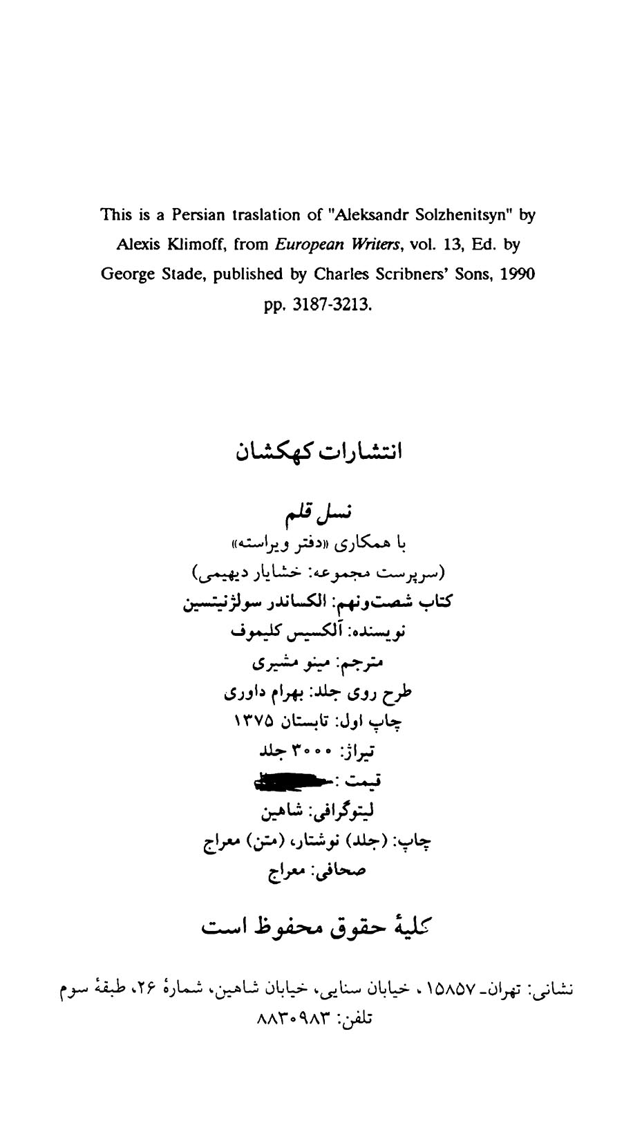 🔖 book_keywords : دانلود فایل pdf الکساندر سولژنیتسین نوشته الکسیس کلیموف ترجمه مینو مشیری
