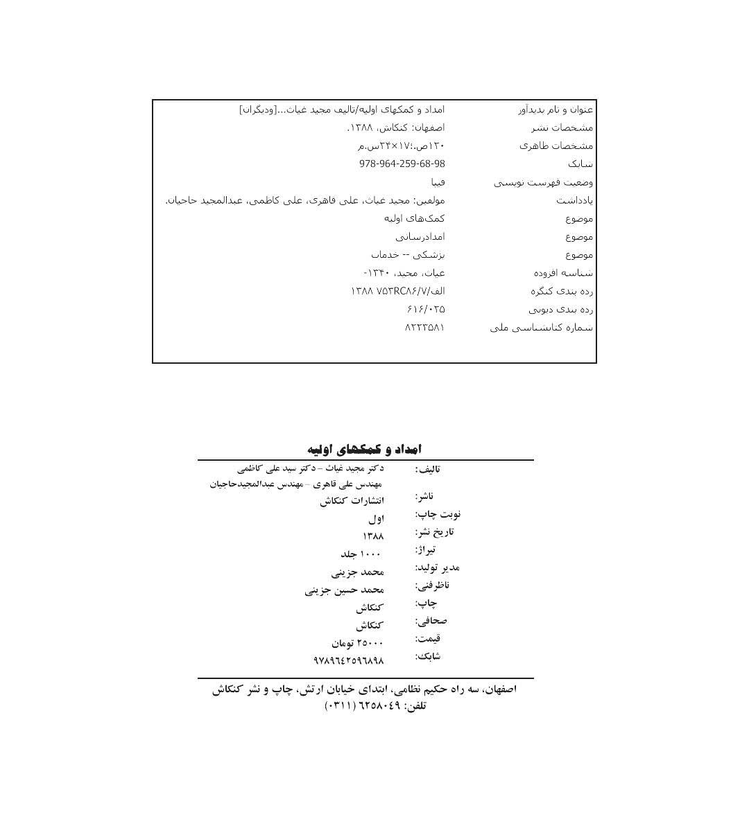 | شناسنامۀ کتاب | شماره کتابشناسی ملی 1853228 |