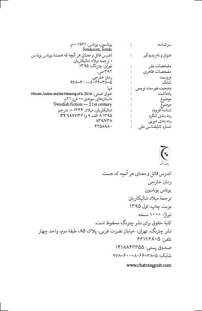 🔖 book_keywords : دانلود فایل pdf اندرس قاتل و معنای هر آنچه که هست نوشته یوناس یوناسن ترجمه میلاد شالیکاریان