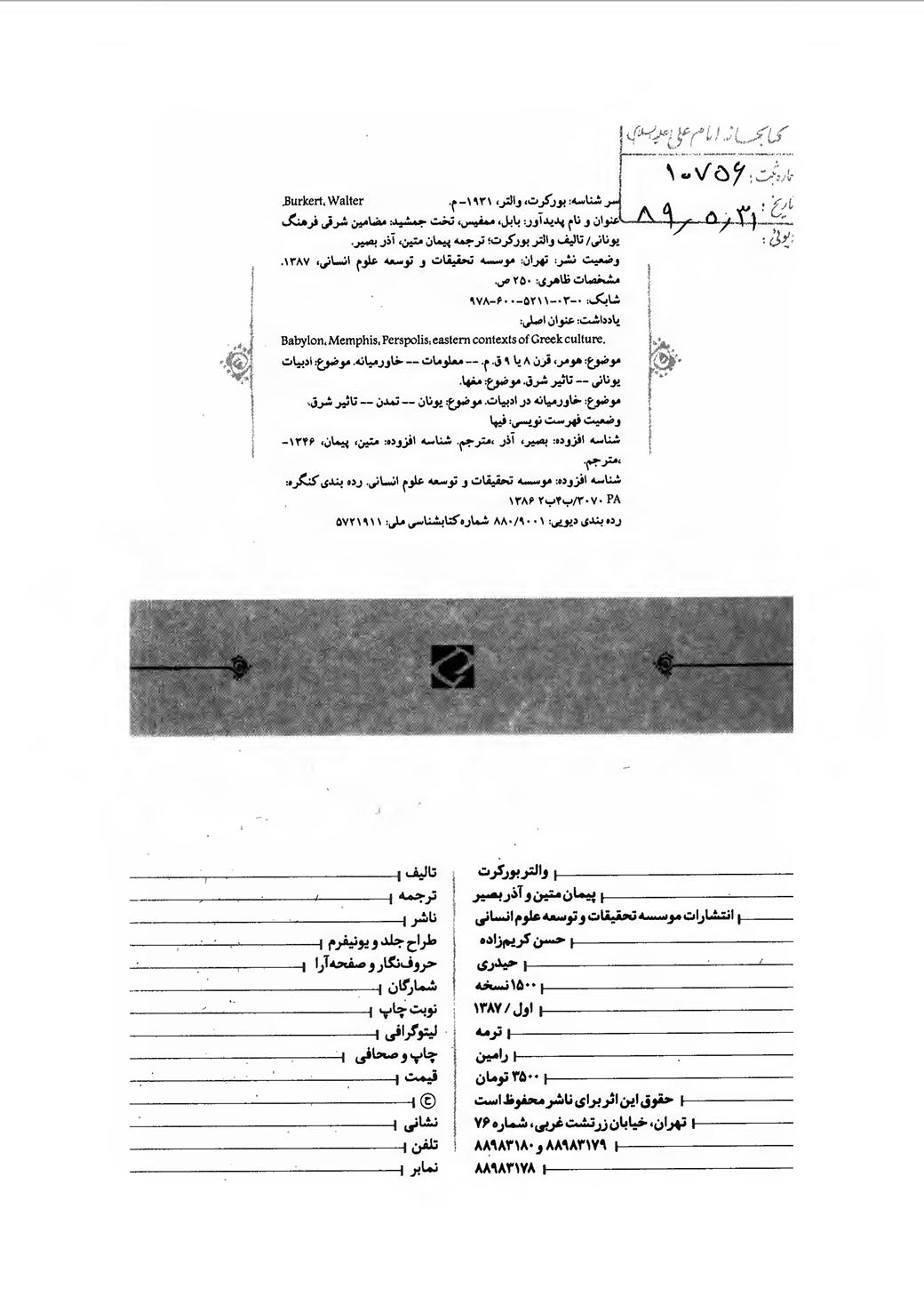 🔖 book_keywords : دانلود فایل pdf بابل، ممفیس، تخت جمشید نوشته والتر بورکرت ترجمه پیمان متین، آذر بصیر
