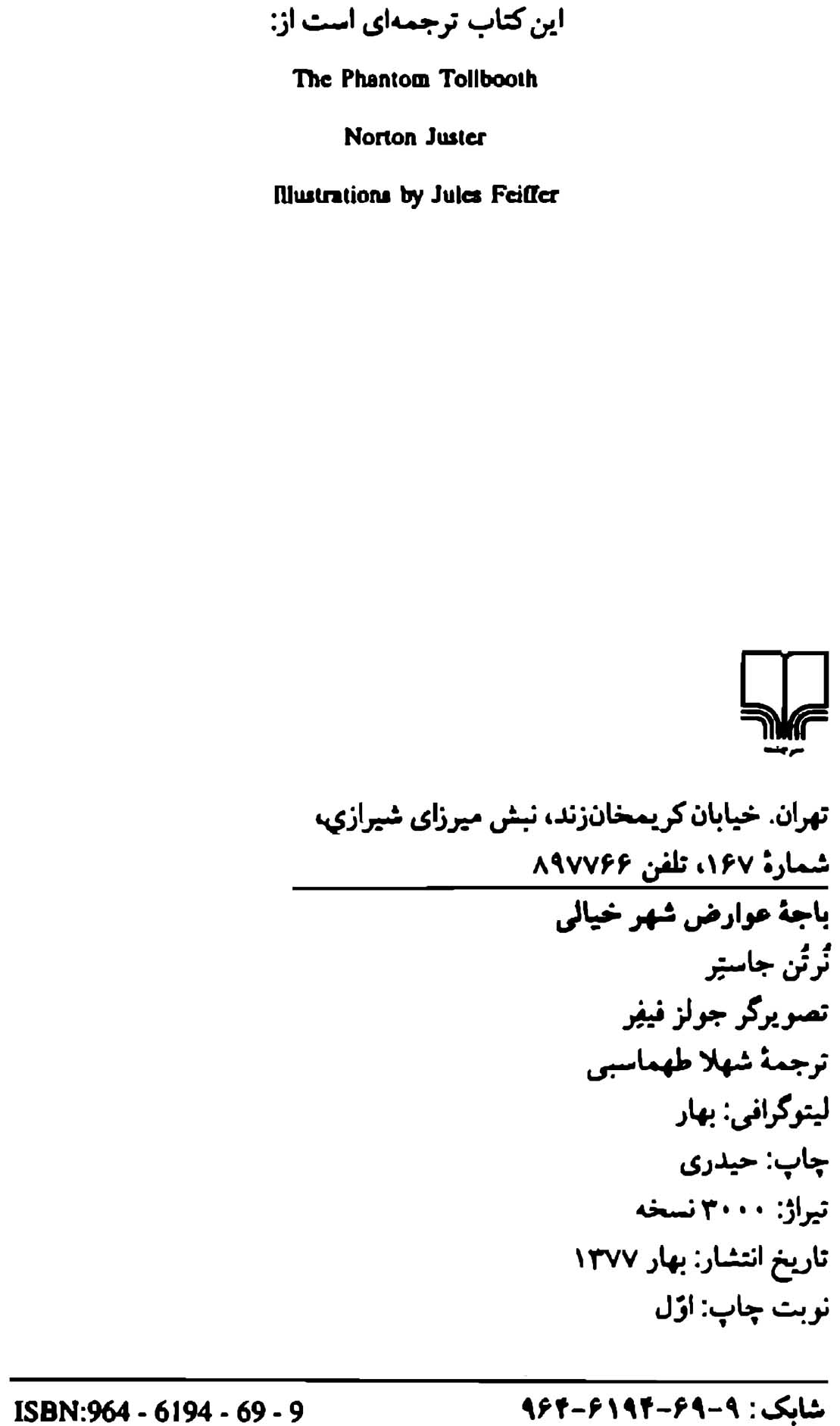 عنوان و نام پدیدآور باجه عوارض شهر خیالی‌/ نرتن جاستر؛ ترجمه شهلا طهماسبی‌؛ نقاشی جولز فیفر