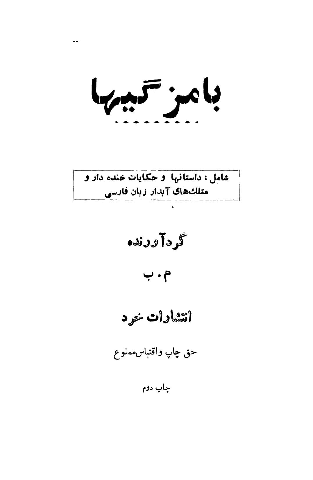 🔖 book_keywords : دانلود فایل pdf بامزگی‌ها نوشته گردآورنده م. ب. طنز اجتماعی طنز فارسی طنزپردازان ایران طنزپردازی طنزنویسان ایرانی طنزنویسی قطعات طنز