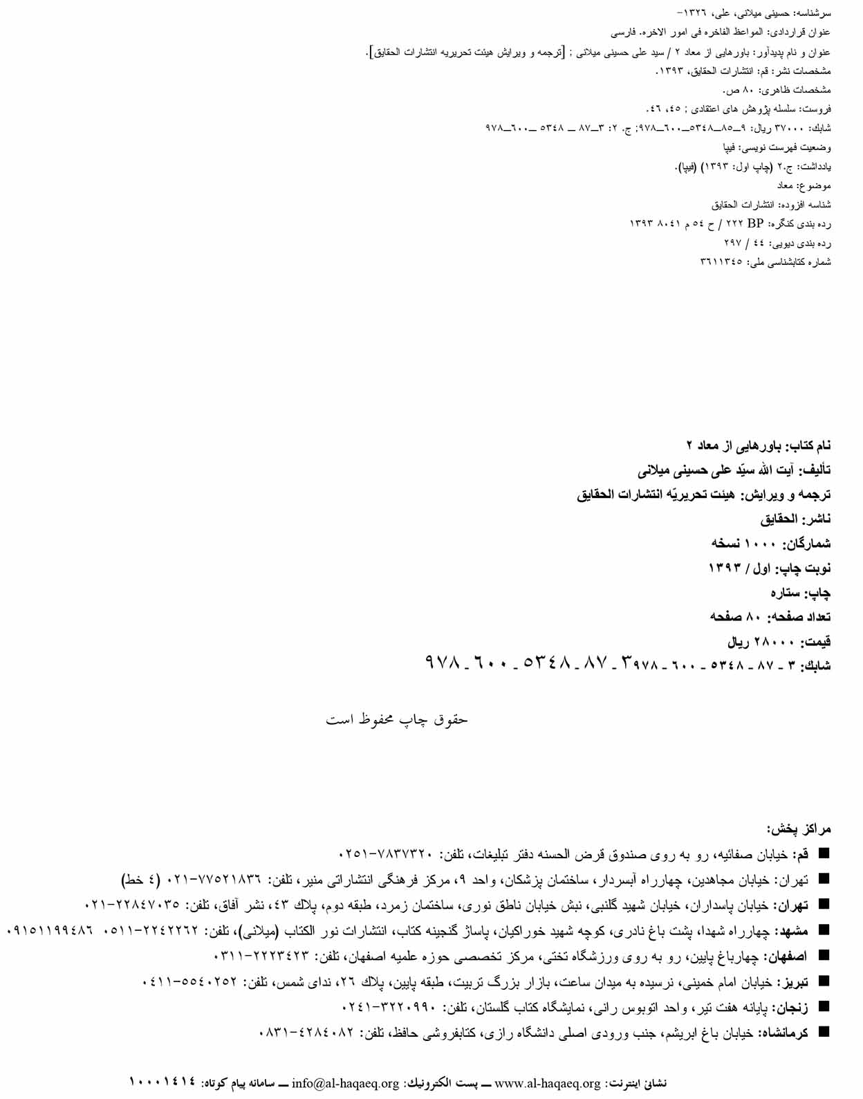 مشخصات نشر قم: مرکز الحقائق‌الاسلامیه، 1393.