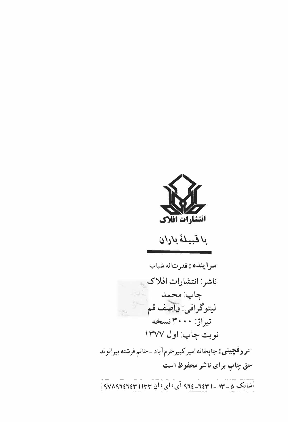 مشخصات نشر خرم‌آباد: افلاک‌، 1377.
