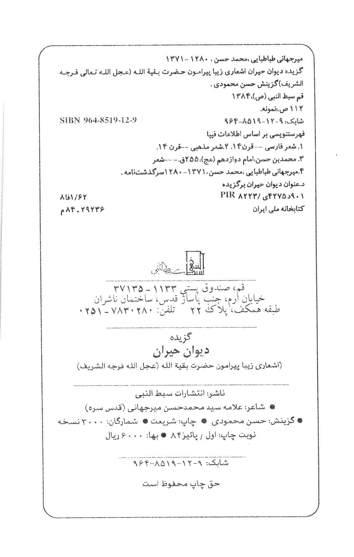 گزیده دیوان حیران (اشعاری زیبا پیرامون حضرت بقیهالله (عجل الله فرجه الشریف) به همراه زندگینامه و تشرفات علامه سیدمحمدحسن میرجهانی طباطبائی