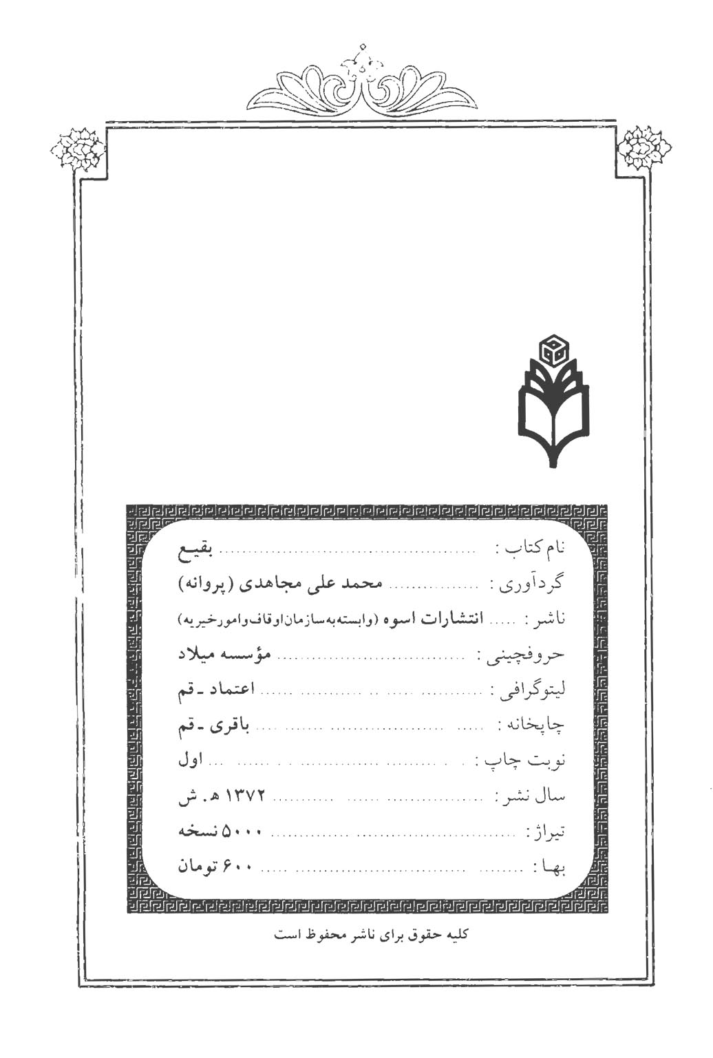 🔖 book_keywords : دانلود فایل pdf بقیع (مناقب و مراثی حضرت فاطمه زهرا سلام الله علیه و ائمه بقیع علیه السلام) نوشته محمدعلی مجاهدی