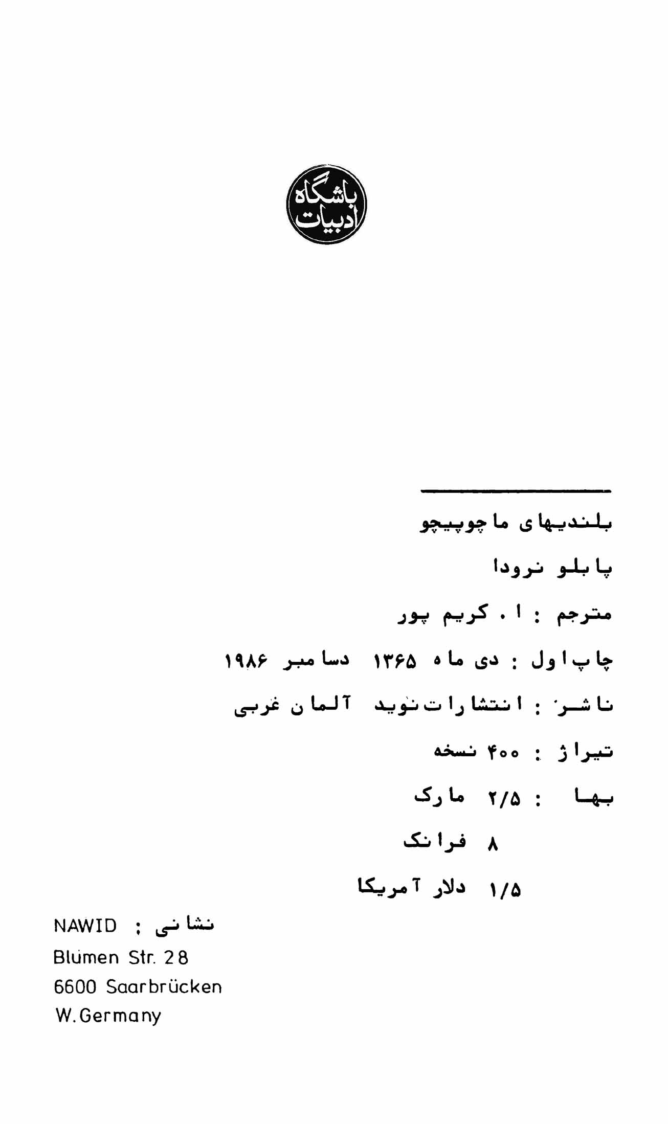 🔖 book_keywords : دانلود فایل pdf بلندیهای ماچوپیچو نوشته پابلو نرودا ترجمه ا. کریم پور