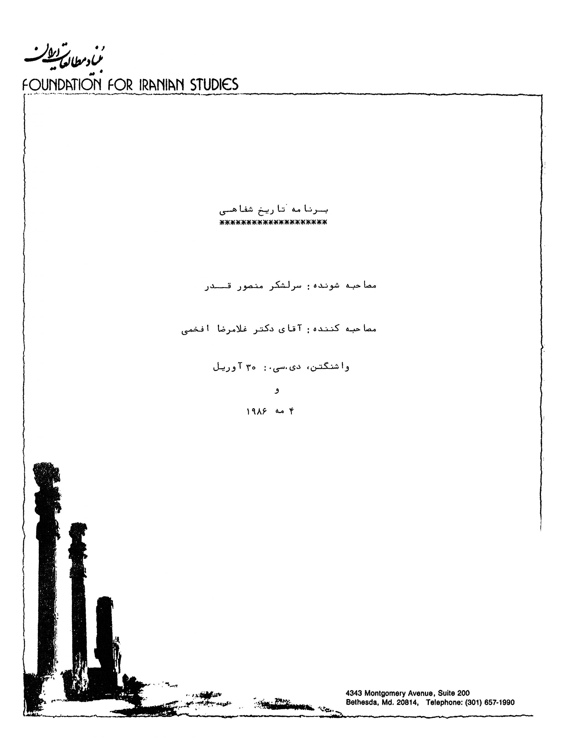 بنیاد مطالعات ایران، برنامه تاریخ شفاهی: سرلشکر منصور قدر