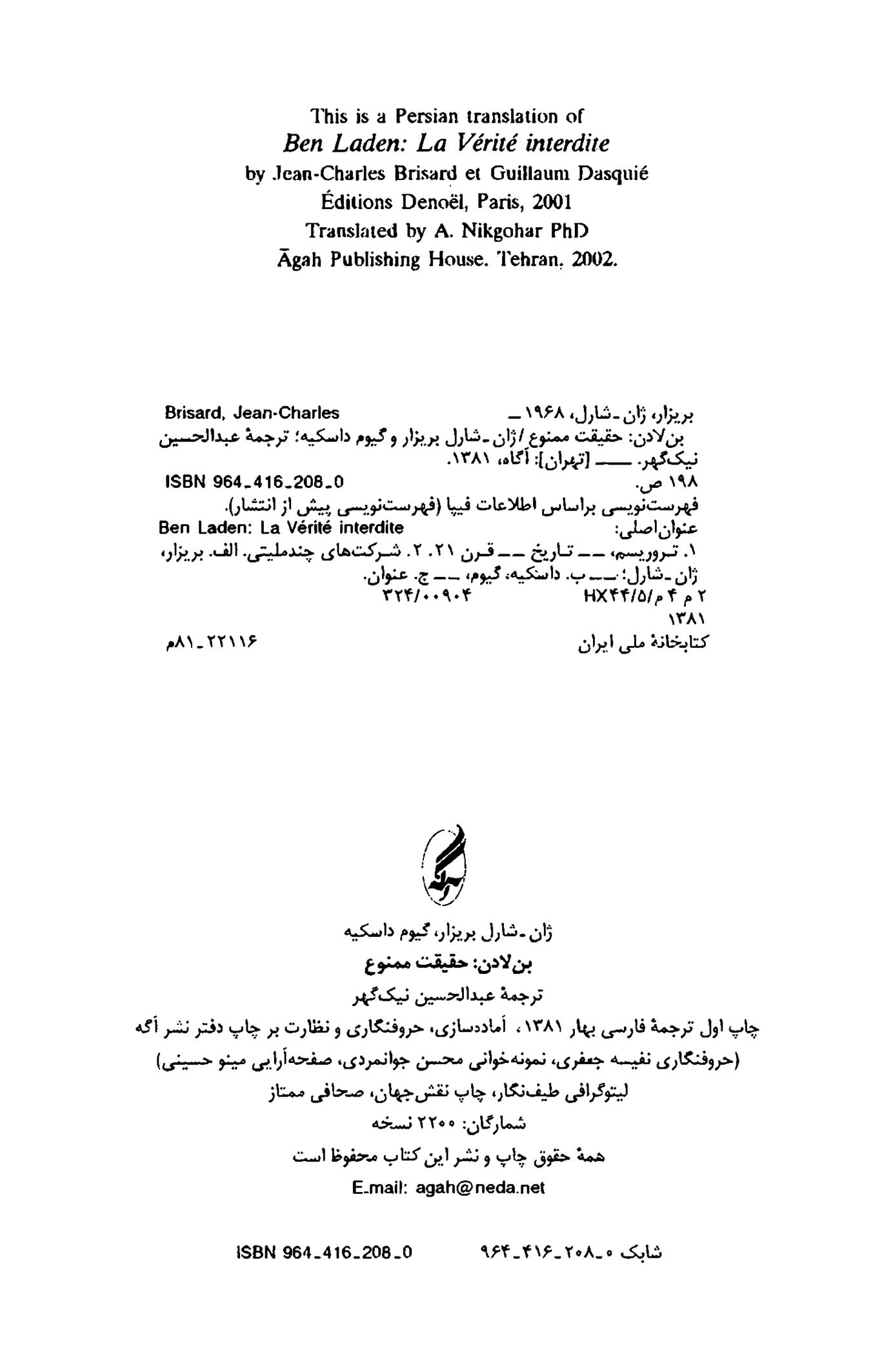 🔖 book_keywords : دانلود فایل pdf بن لادن، حقیقت ممنوع نوشته ژان شارل بریزار, گیوم داسکیه ترجمه عبدالحسین نیک گهر