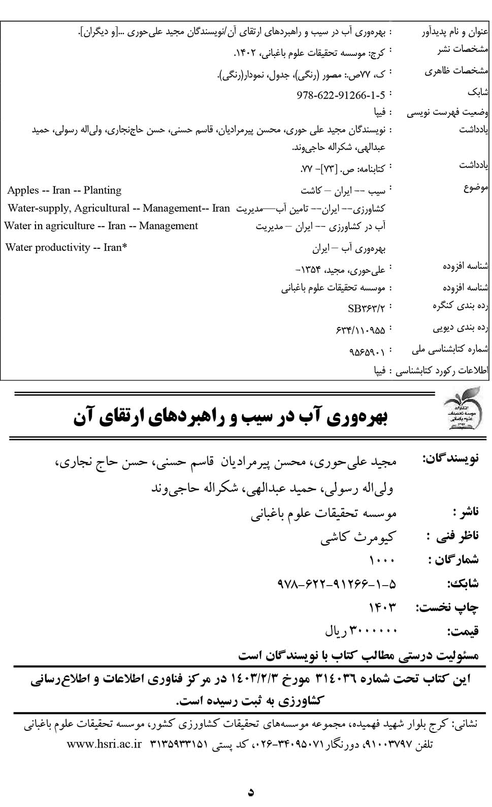 🔖 book_keywords : دانلود فایل pdf بهره وری آب در سیب و راهبردهای ارتقای آن نوشته مجید علی حوری محسن پیرمرادیان قاسم حسنی حسن حاج نجاری ولی اله رسولی حمید عبداللهی شکراله حاجی وند
