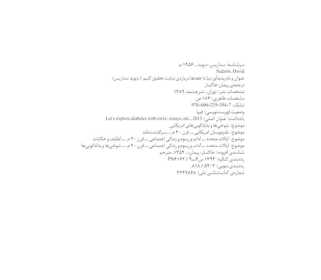 🔖 book_keywords : دانلود فایل pdf بیا با جغدها دربارهی دیابت تحقیق کنیم نوشته دیوید سداریس ترجمه پیمان خاکسار
