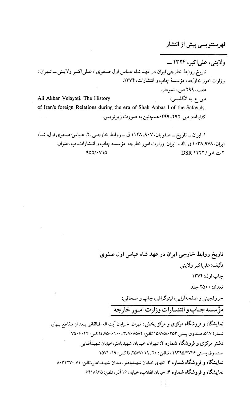 🔖 book_keywords : دانلود فایل pdf تاریخ روابط خارجی ایران در عهد شاهعباس اول صفوی نوشته علیاکبر ولایتی