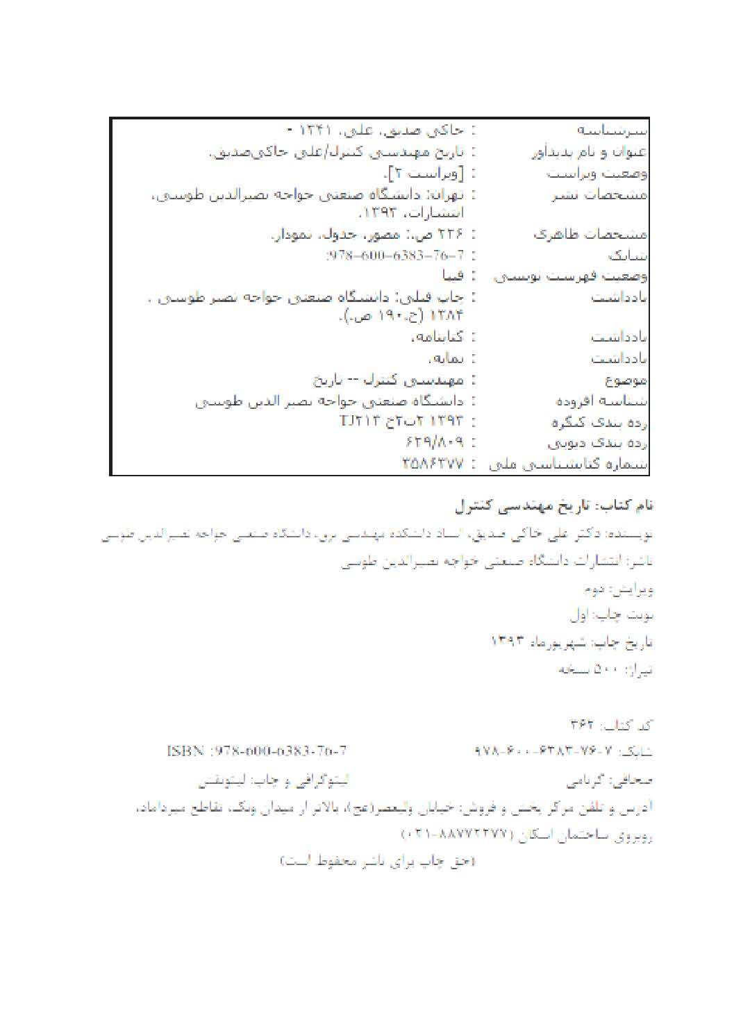 🔖 book_keywords : دانلود فایل pdf تاریخ مهندسی کنترل نوشته علی خاکی صدیق
