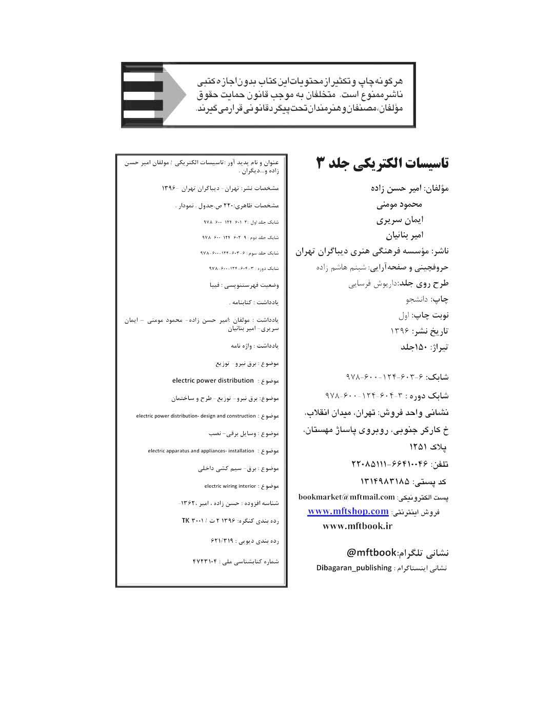 🔖 book_keywords : دانلود فایل pdf تاسیسات الکتریکی جلد سوم نوشته امیر حسنزاده ، ایمان سریری ، محمود مومنی