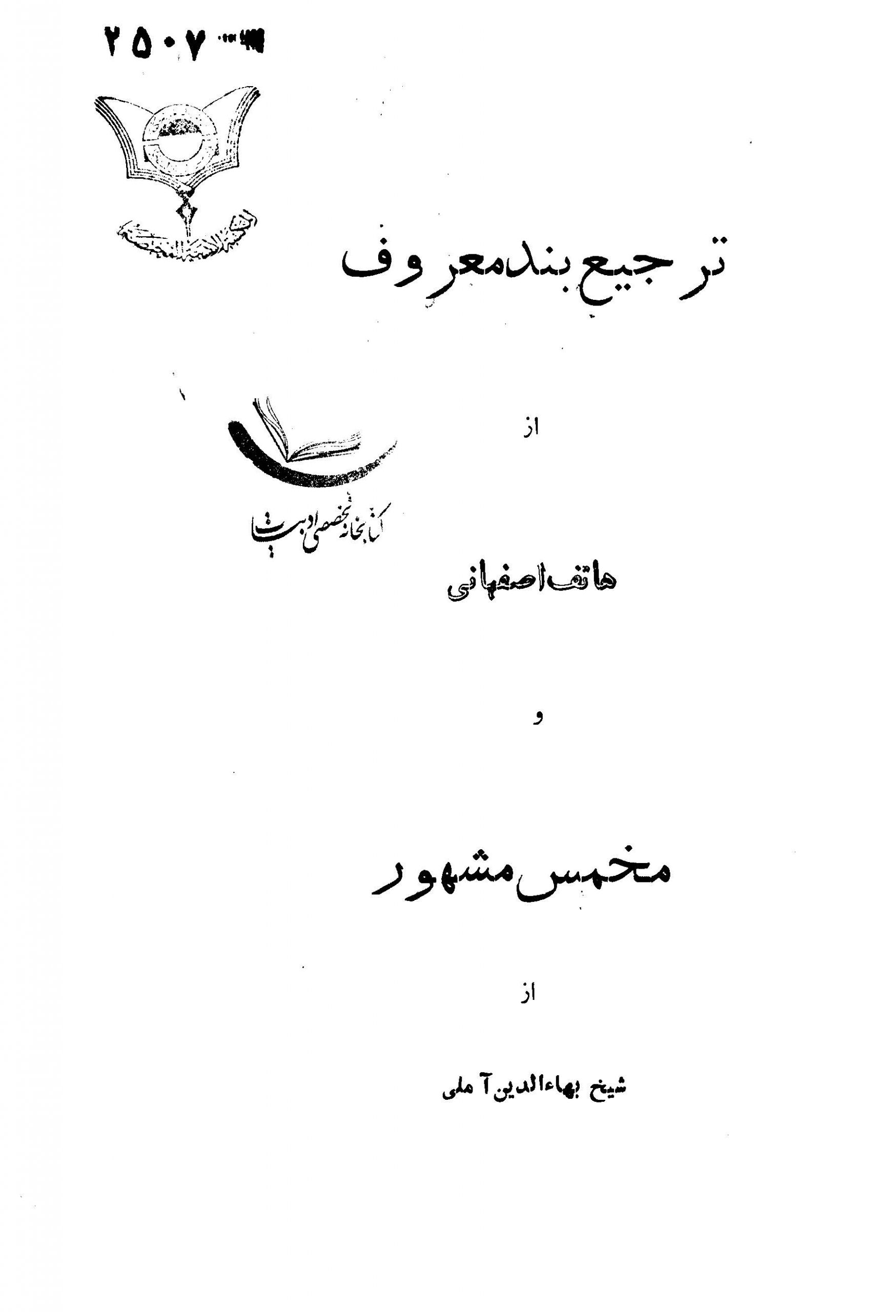 ترجیع بند معروف از هاتف اصفهانی و مخمس مشهور از شیخ بهاءالدین آملی