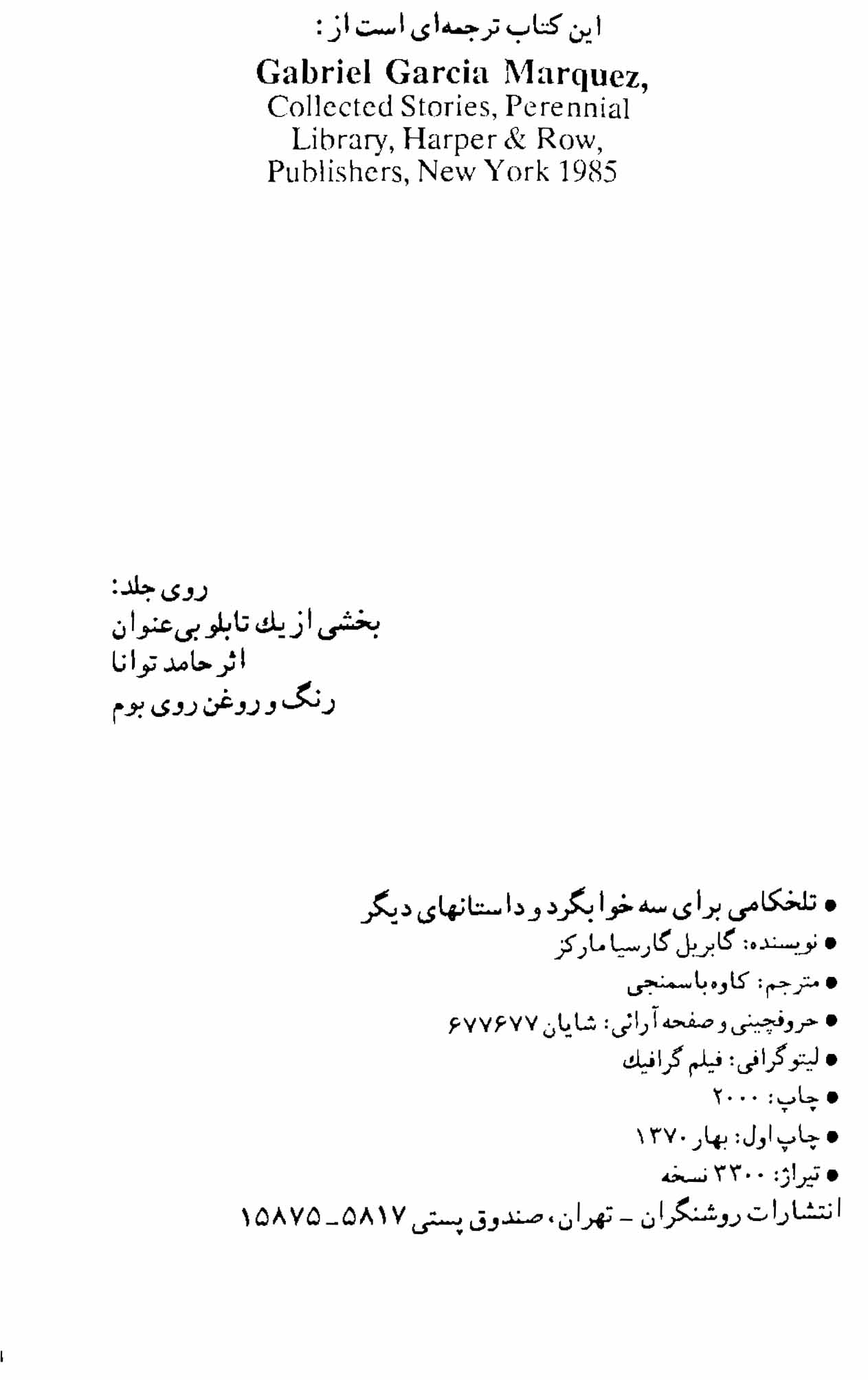 سرشناسه گارسیامارکز، گابریل‌، – م.