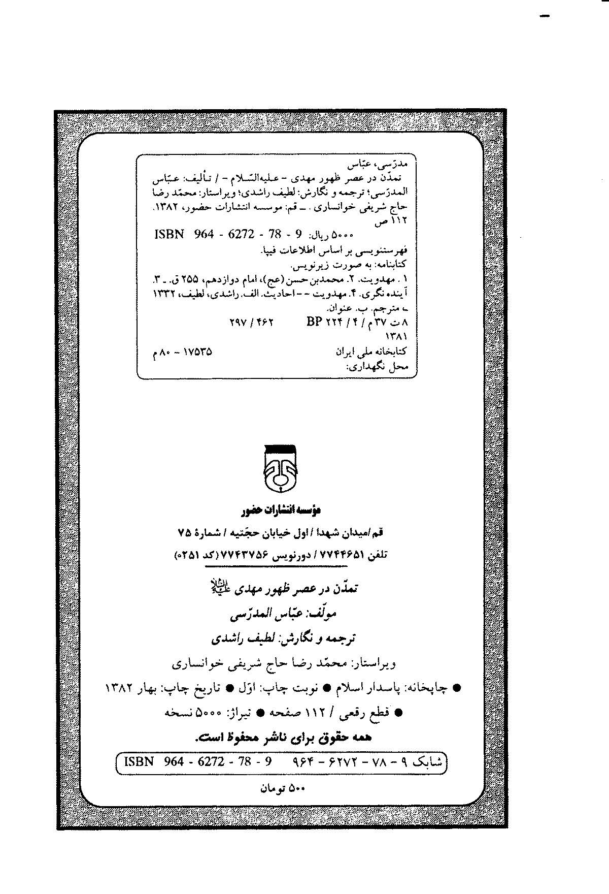 🔖 book_keywords : دانلود فایل pdf تمدن در عصر ظهور مهدی (ع) نوشته عباس مدرسی ترجمه لطیف راشدی