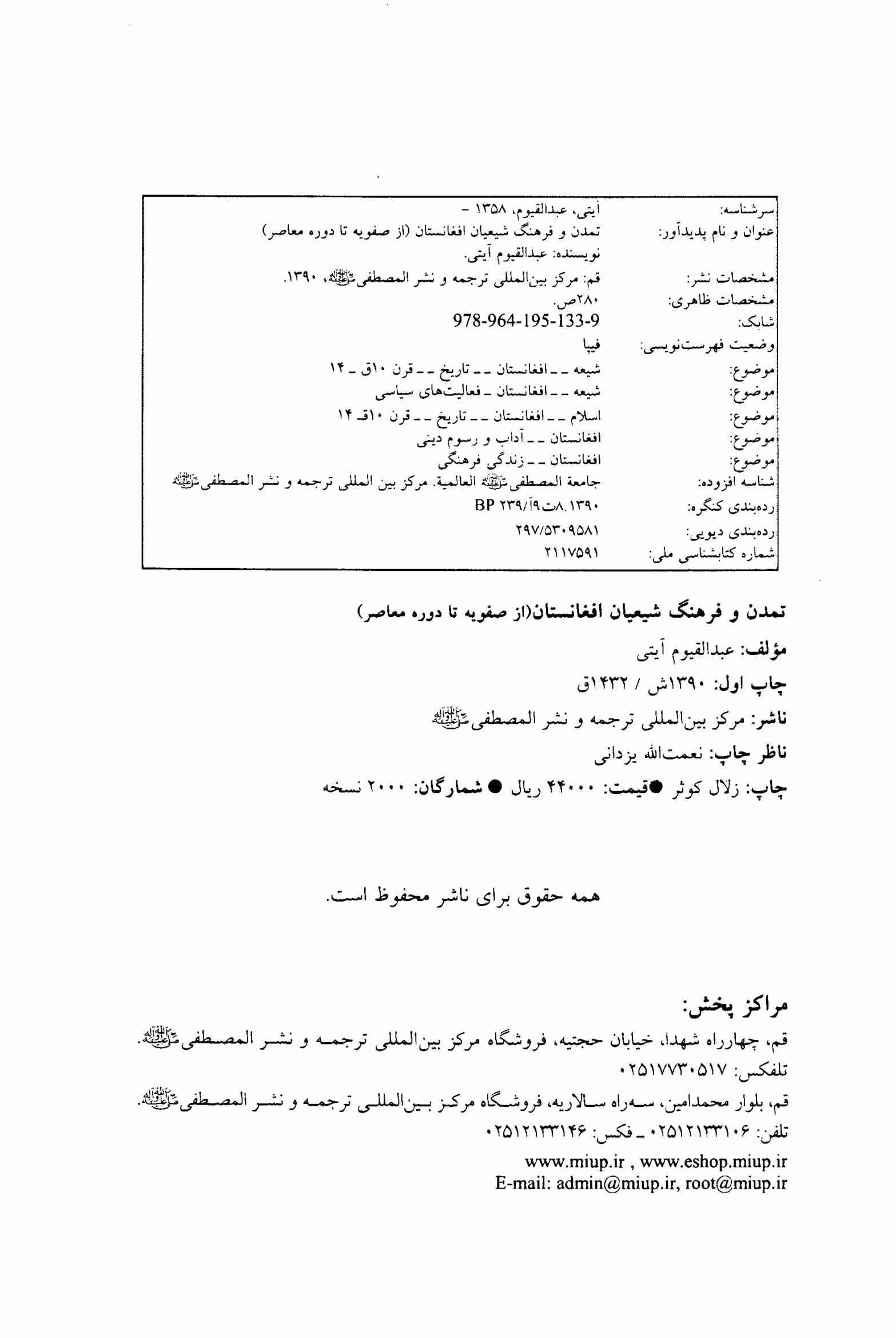 🔖 book_keywords : دانلود فایل pdf تمدن و فرهنگ شیعیان افغانستان از صفویه تا دورۀ معاصر نوشته عبدالقیوم آیتی