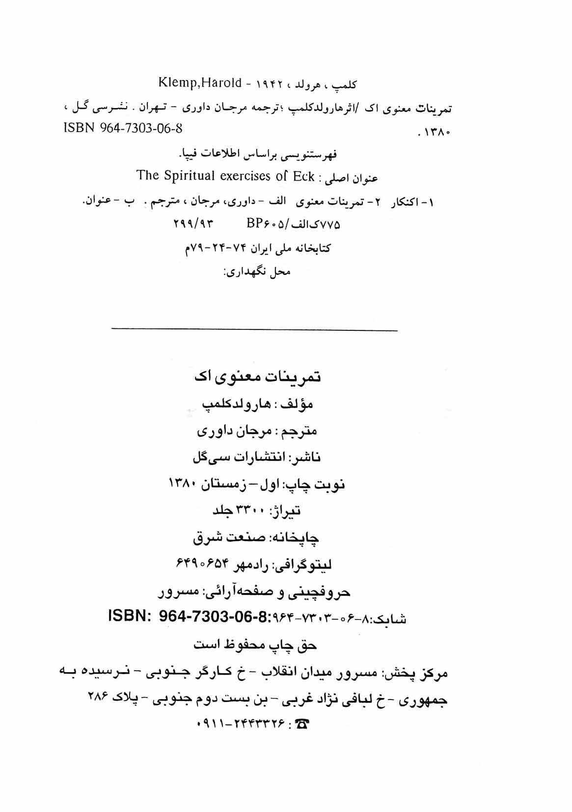 🔖 book_keywords : دانلود فایل pdf تمرینات معنوی اک نوشته هارولد کلمپ ترجمه مرجان داوری