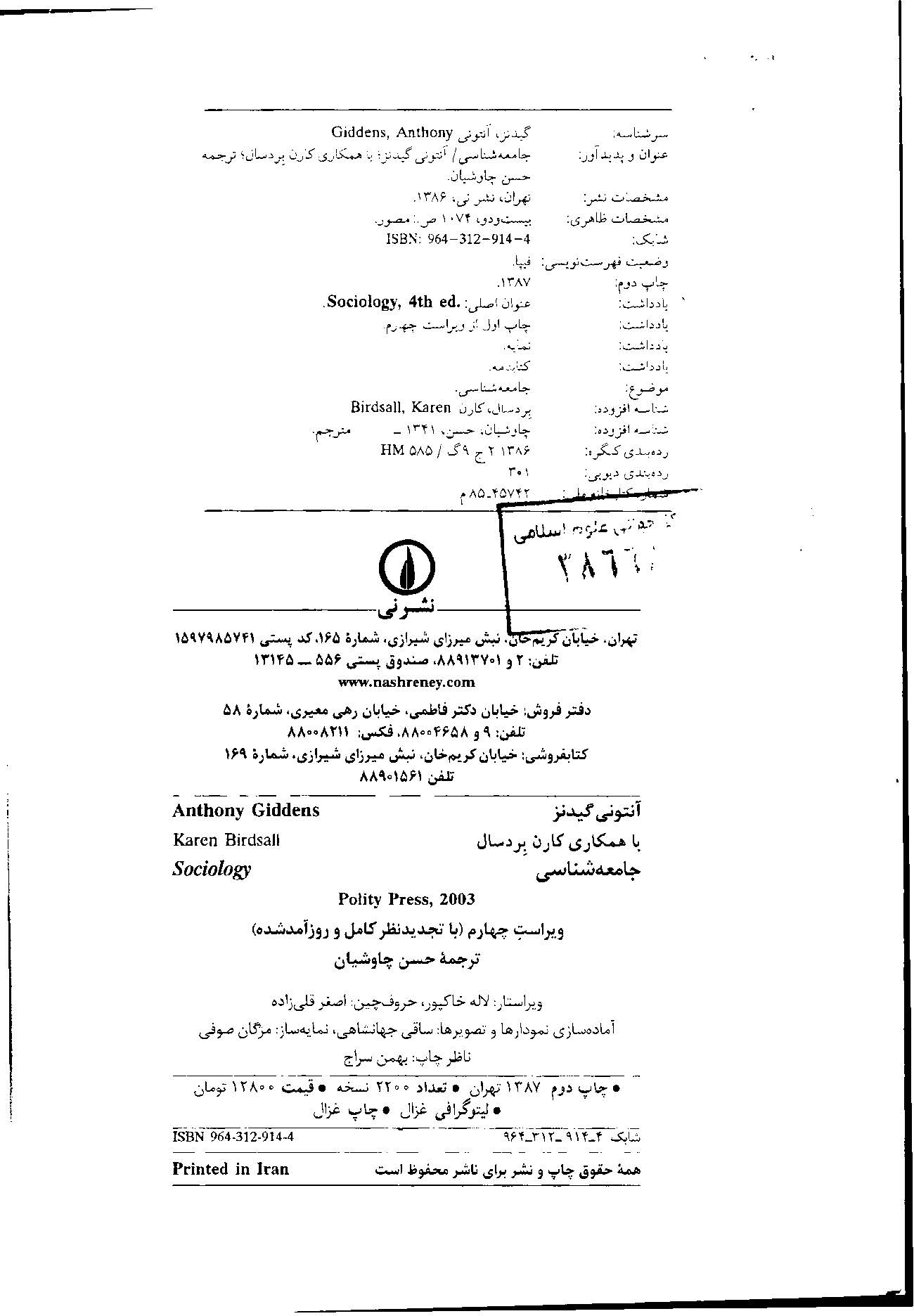 🔖 book_keywords : دانلود فایل pdf جامعه شناسی نوشته آنتونی گیدنز ترجمه حسن چاوشیان
