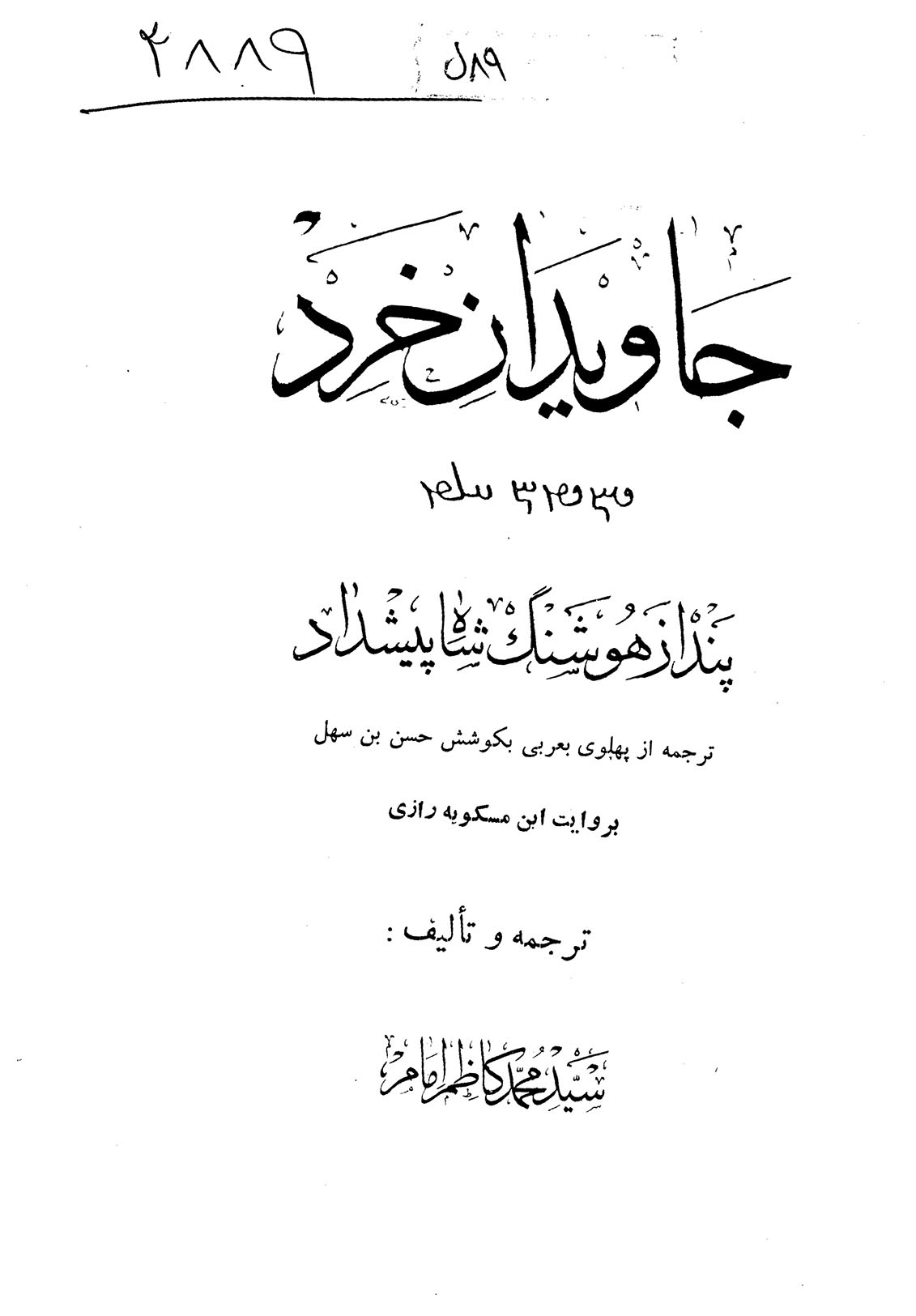 ترجمه از پهلوی بعربی: بکوشش حسن بن سهل