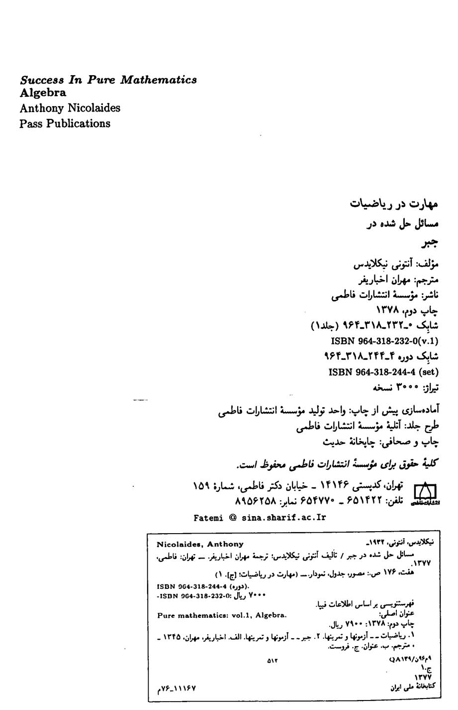 🔖 book_keywords : دانلود فایل pdf جبر نوشته آنتونی نیکلایدس ترجمه مهران اخباریفر