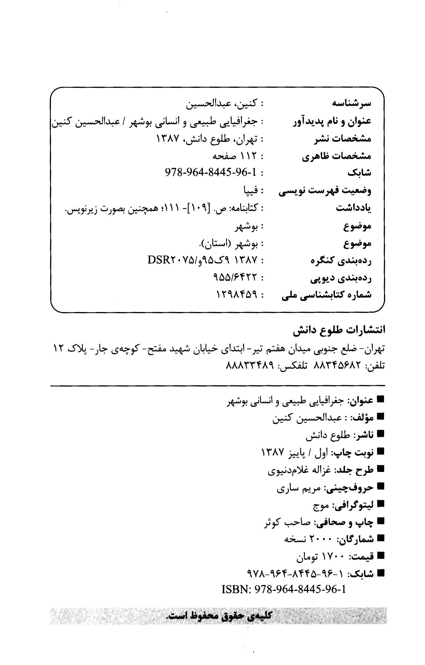 🔖 book_keywords : دانلود فایل pdf جغرافیای طبیعی و انسانی بوشهر نوشته عبدالحسین کنین