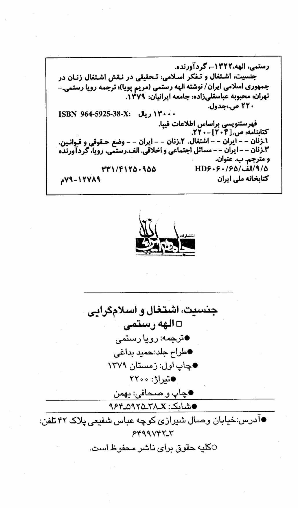 کتاب حاضر ترجمه ای است از کتاب Women, work & Islamism نوشته دکتر الهه رستمی، استاد دانشگاه مطالعات شرق شناسی و آفریقایی دانشگاه لندن (Soas).