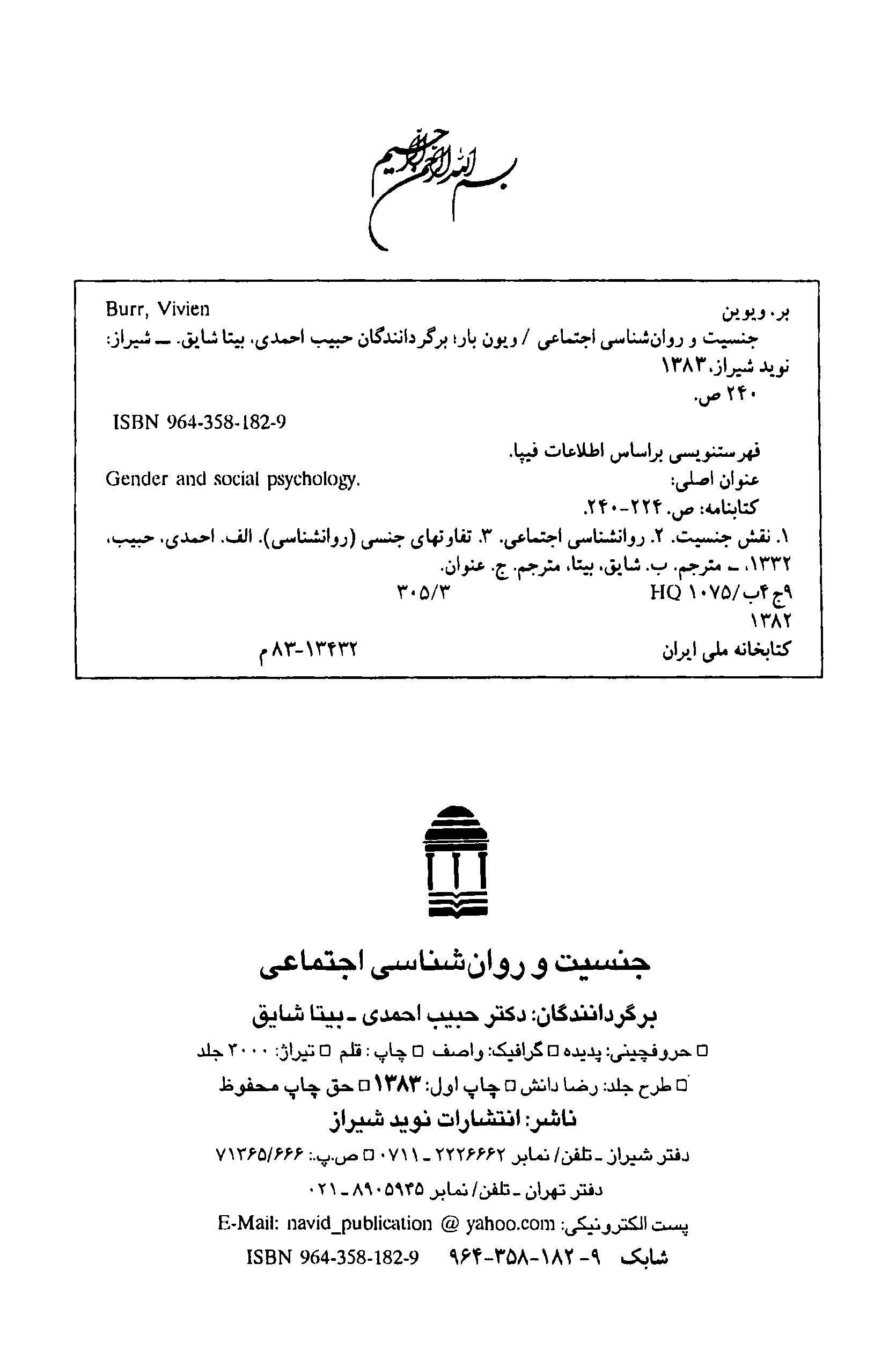 🔖 book_keywords : دانلود فایل pdf جنسیت و روان‌شناسی اجتماعی نوشته ویون بار ترجمه بیتا شایق