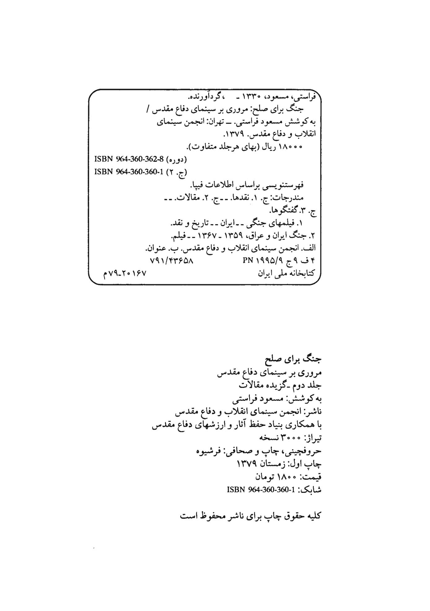 🔖 book_keywords : دانلود فایل pdf جنگ برای صلح : مروری بر سینمای دفاع مقدس جلد ۲ گزیده مقالات نوشته مسعود فراستی